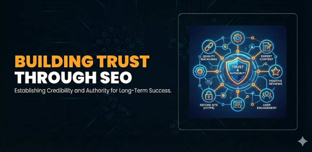 Trust-building elements include detailed content, transparent explanations, clear contact information, and consistent branding. User engagement signals such as time spent on site also influence rankings.